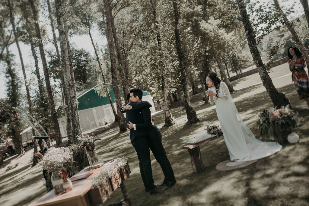 El día de su boda todo estaba increíble. Lara llegó en coche con su padre e hicieron un recorrido entre la gente hasta llegar a la mesa donde la esperaban Rocío, de Luz Verde Eventos y, por supuesto, Jose… ella parecía un hada, con su mágica sonrisa, su precioso vestido y un entorno tan maravilloso como es el de Lenda do Quercus.